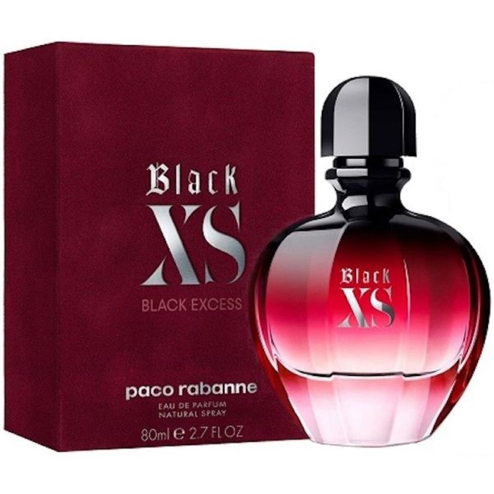 Black XS for Her Paco Rabanne for women This modern floral-fruity composition starts sharp and spicy with cranberry, pink peppercorn and tamarind notes around the heart of hellebore noir rose, black violet and cocoa blossom. The base notes are patchouli, Massoia wood and vanilla.